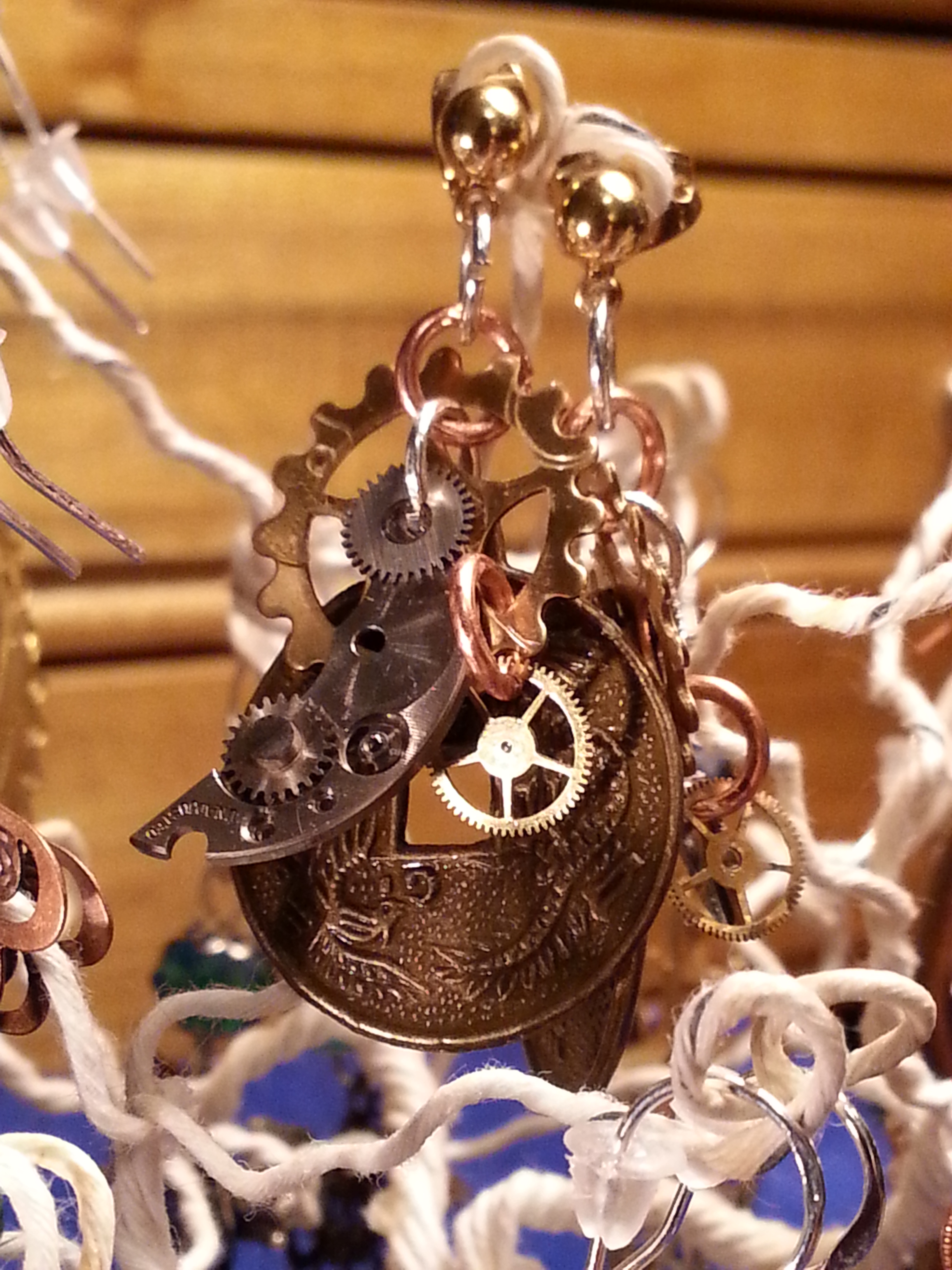 April 9, 2013April 9, 2013 steampunnk earings, brass gears, watch parts, coin charms Please share this on... Click to share on Tumblr (Opens in new window) Tumblr Click to share on Pinterest (Opens in new window) Pinterest Click to share on Facebook (Opens in new window) Facebook Click to email a link to a friend (Opens in new window) Email Like Loading... Related