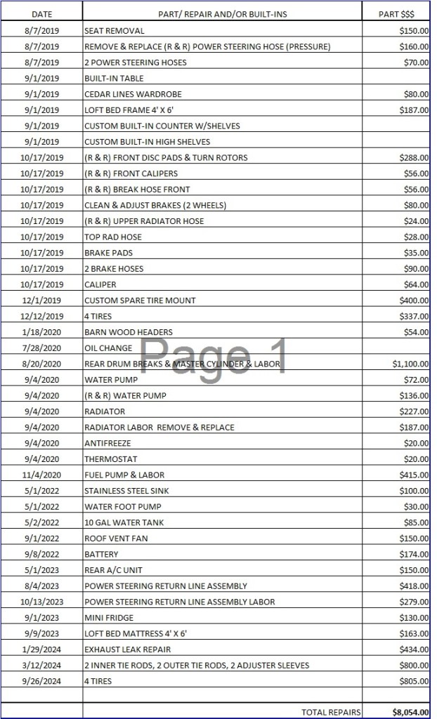 Most of the big $$$ items that have replaced and repaired are listed. It has a very strong engine. This “camper” is very cozy and has a layout that makes great use of the interior space. Smoke free and so cute! I’ll take pictures after I move most my thing out.