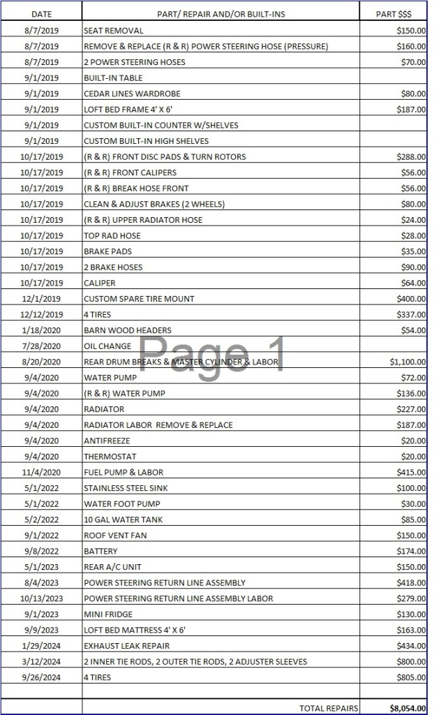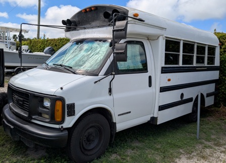 - One spare tire slightly used on back of bus on $400 custom welded mount.