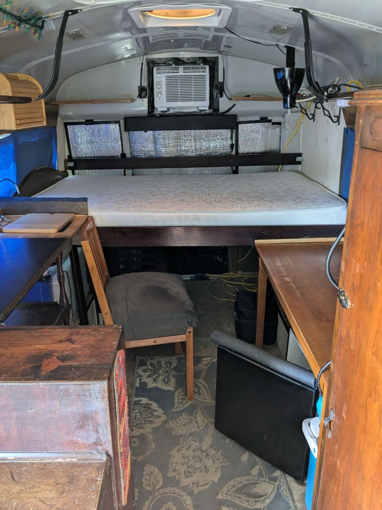 I had to build this bus at the beginning of the pandemic when I lost my home. With a crippled hand that I shattered my wrist the year before. I’ve been living in it for 5 1/2 years. Now I’ve lost more work and can’t afford to keep it all anymore. I sold my trailer and a friend is selling my motorcycle.
