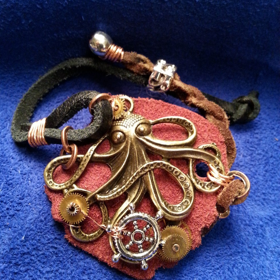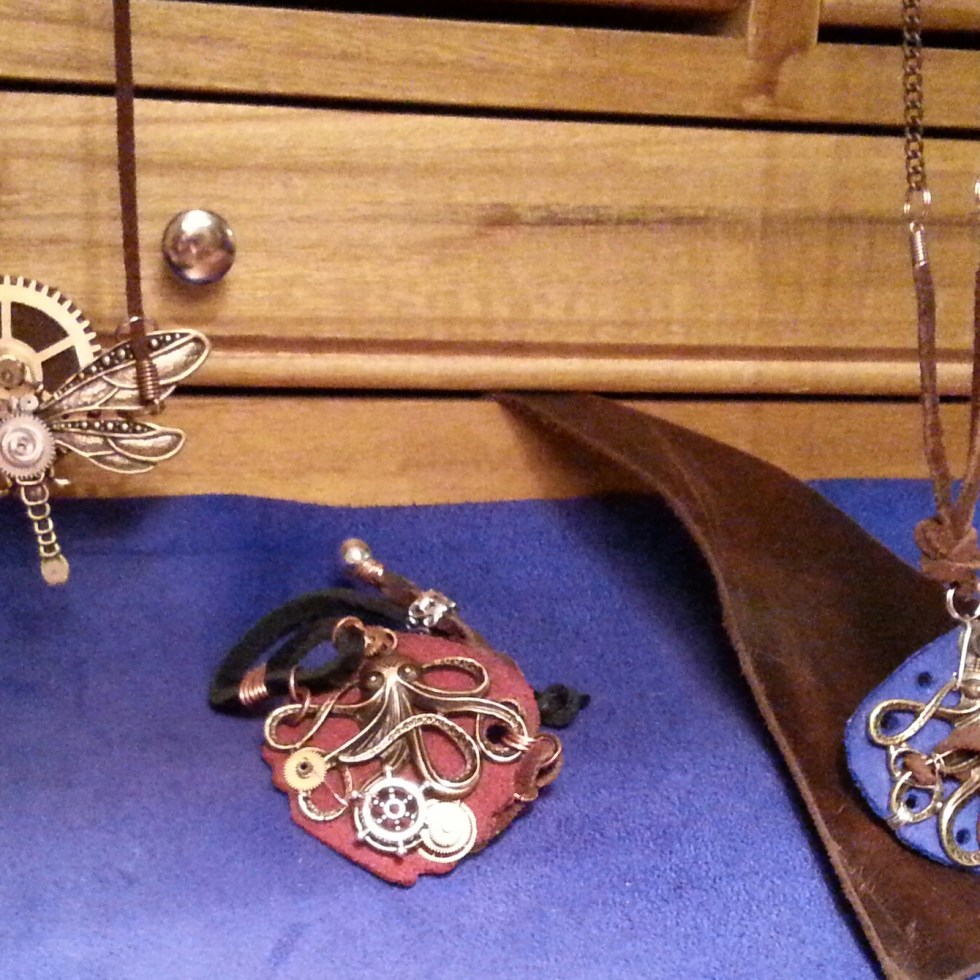 Steampunk leather – octopus, dragonfly, necklaces & bracelet