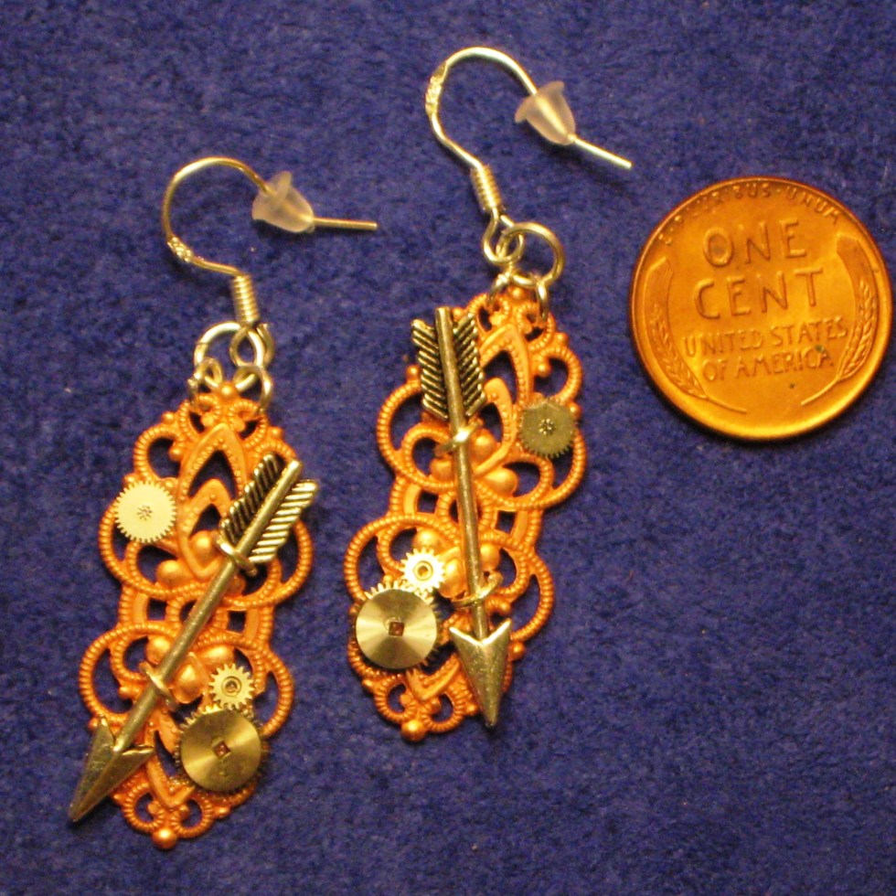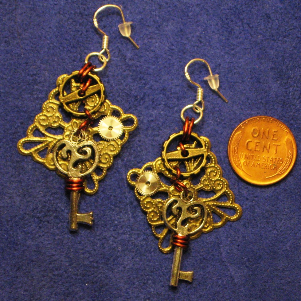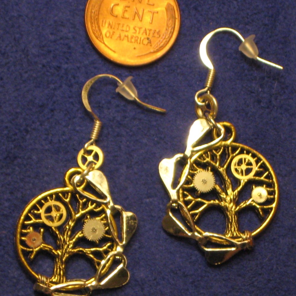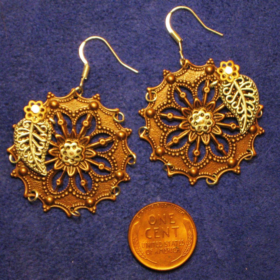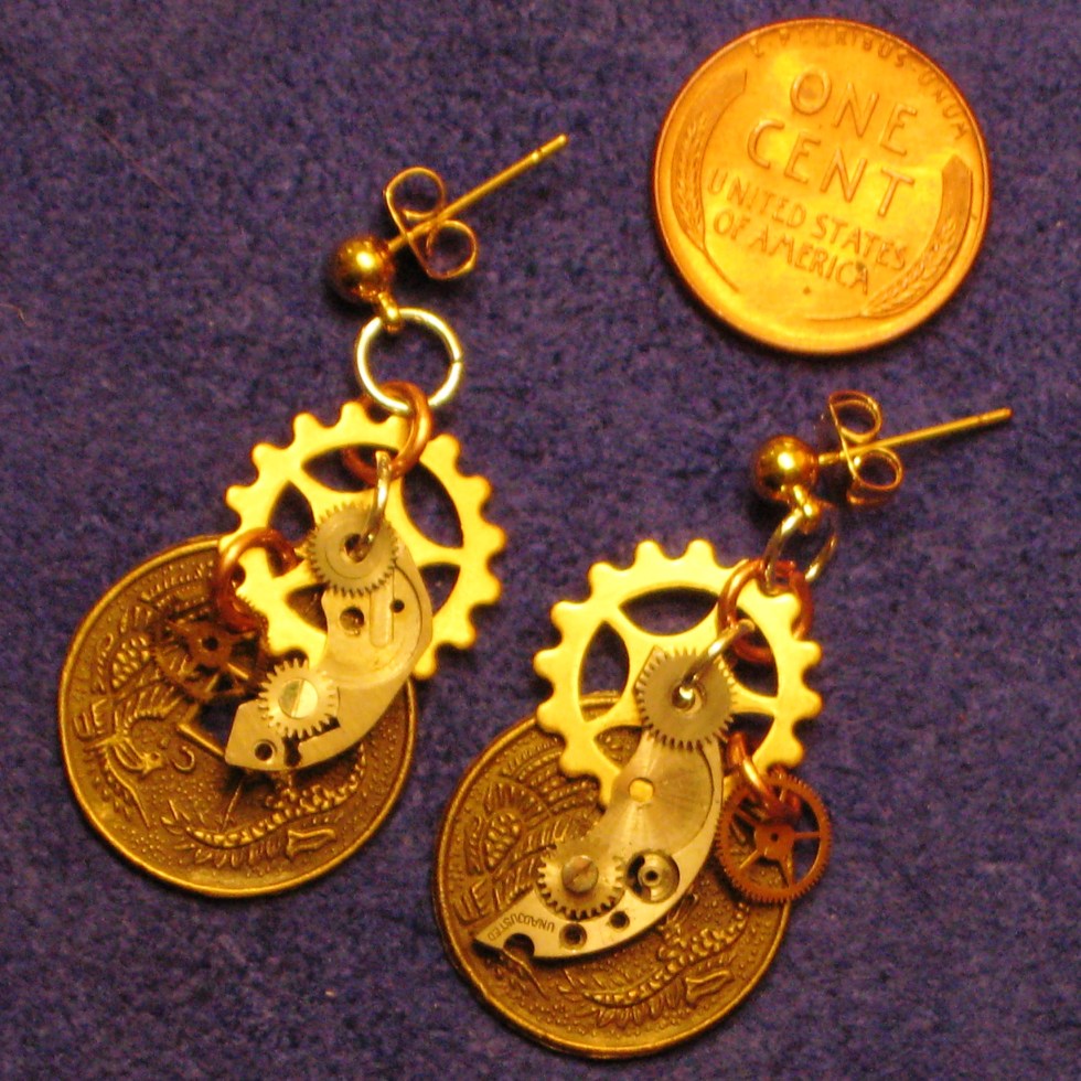 Brass Gear, Bronze Coin, Watch Parts, Gold Post Earrings