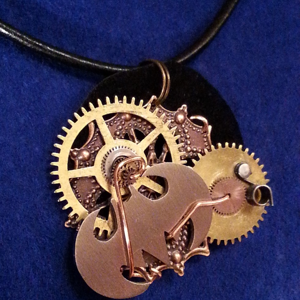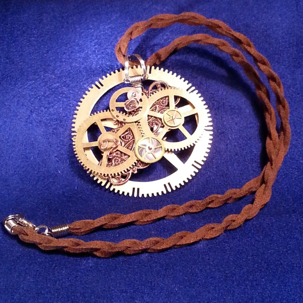Steampunk Necklace, 2″ clock gear, (2) 1″ clock gears