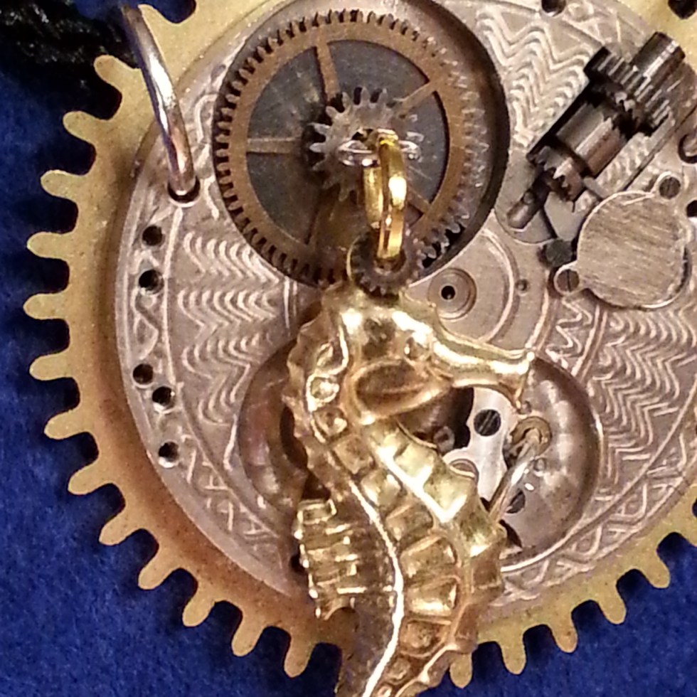 Steampunk Brass Seahorse Pocketwatch Gear Necklace
