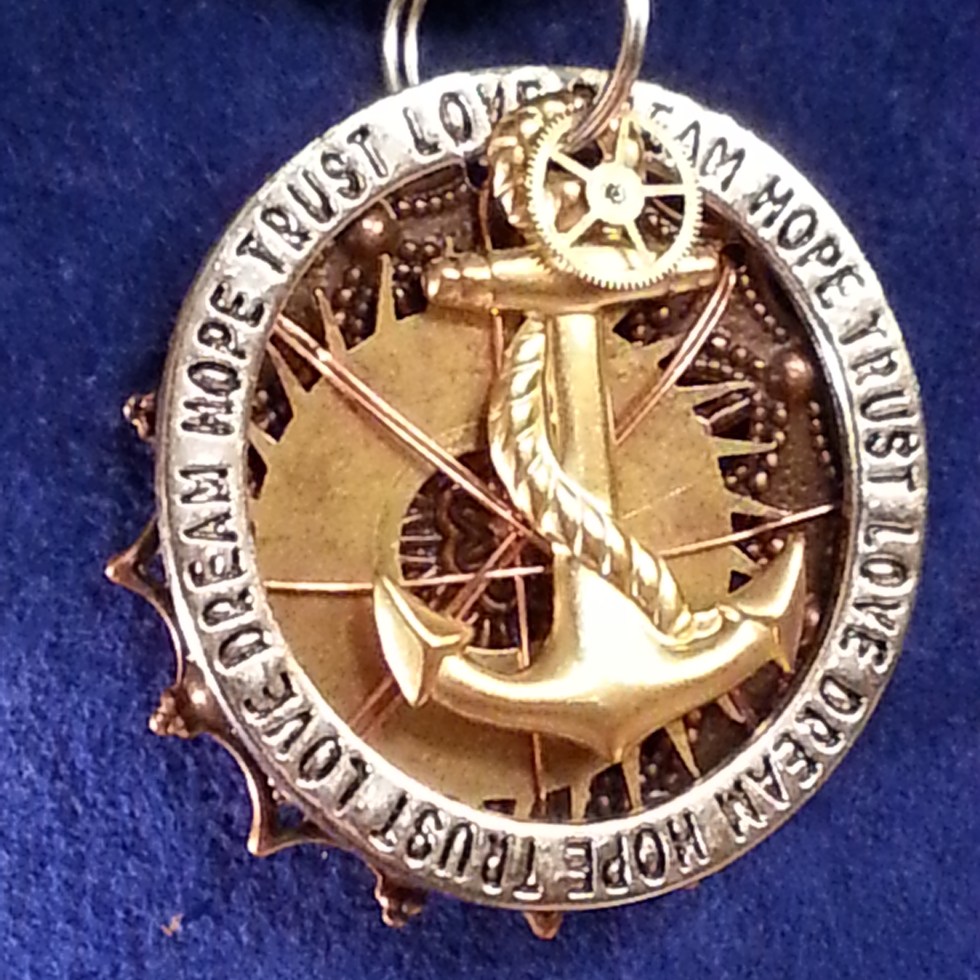 Steampunk Anchor Gear Filigree DREAM HOPE TRUST LOVE Necklace