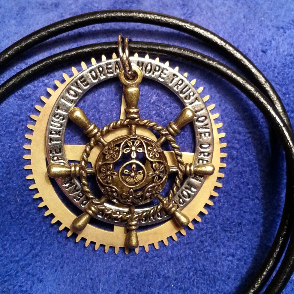 Steampunk Octopus, pocket watch parts, brass gears, leather, anchor love, chain, necklace
