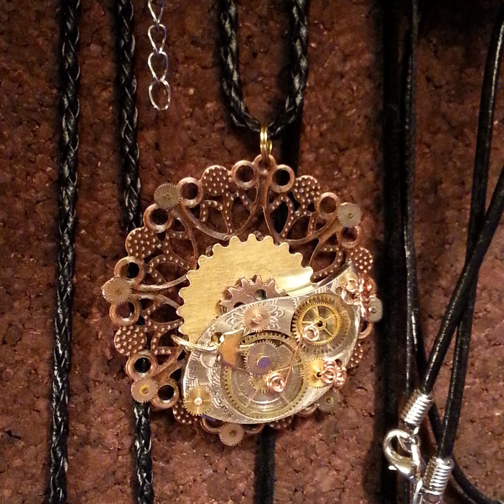 Steampunk necklace, pocket watch part, filigree, gears