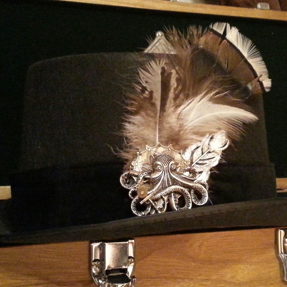 Steampunk Top Hat w/ octopus, feathers, filigree